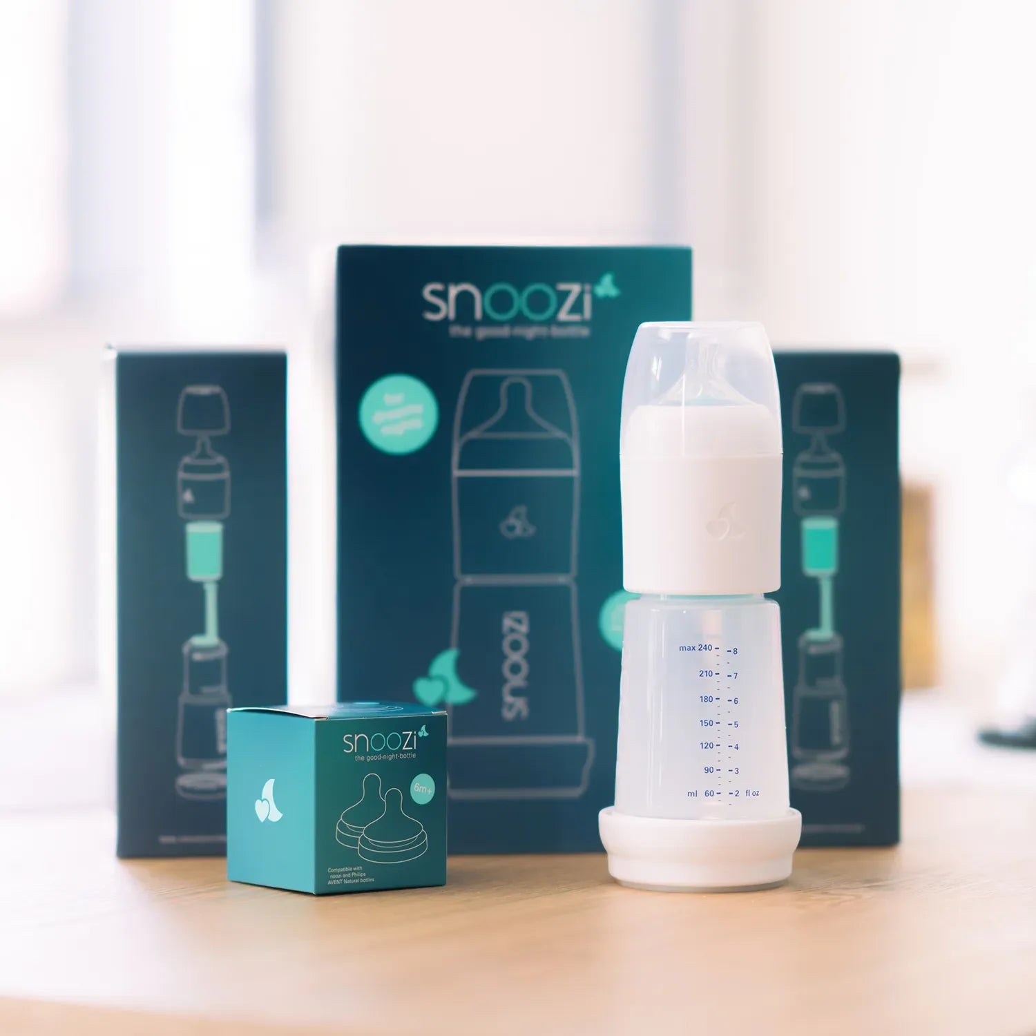 Snoozi The night bottle is delivered by default with the Philips Avent Natural Response Teat Adapter.