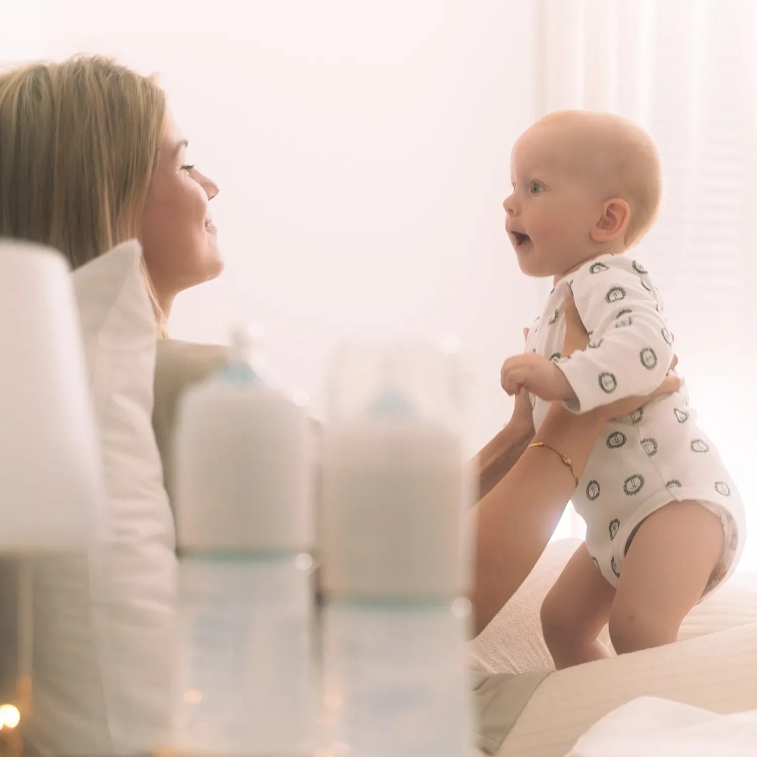 If your baby is hungry at night, just Press, shake and you're done is the freshly prepared night bottle. Your baby does not panic and falls asleep again quickly. After feeding, simply place the next Snoozi night bottle on the heat station and sleep on.
